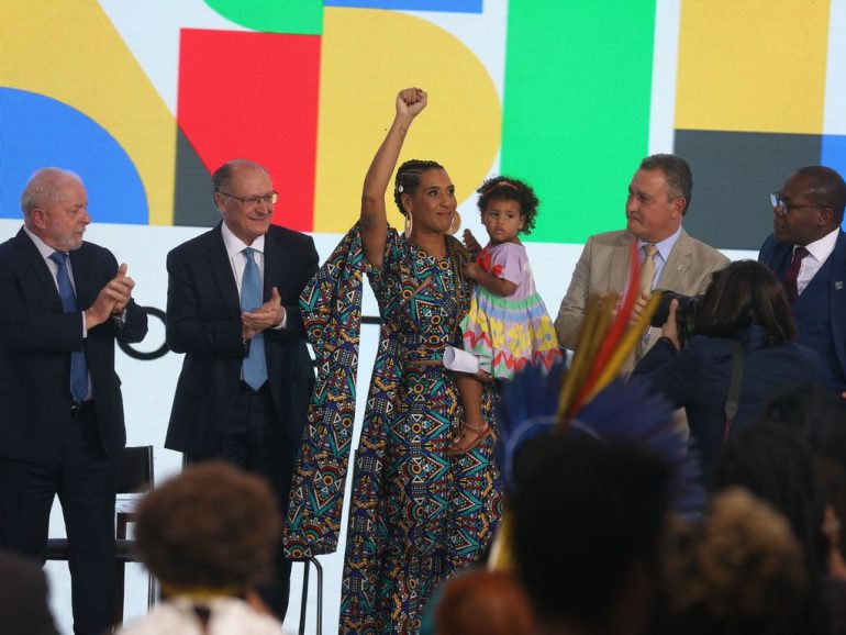 Em solenidade realizada nessa quarta-feira (11), a jornalista e ativista Anielle Franco foi empossada ministra da Igualdade Racial. O evento, que aconteceu no Palácio do Planalto, em Brasília, marcou também a chegada de Sonia Guajajara ao comando do Ministério dos Povos Indígenas. Planejadas para acontecer separadamente na segunda (9), as cerimônias de posse foram remarcadas em uma única solenidade devido à invasão e depredação dos prédios dos Três Poderes por bolsonaristas.