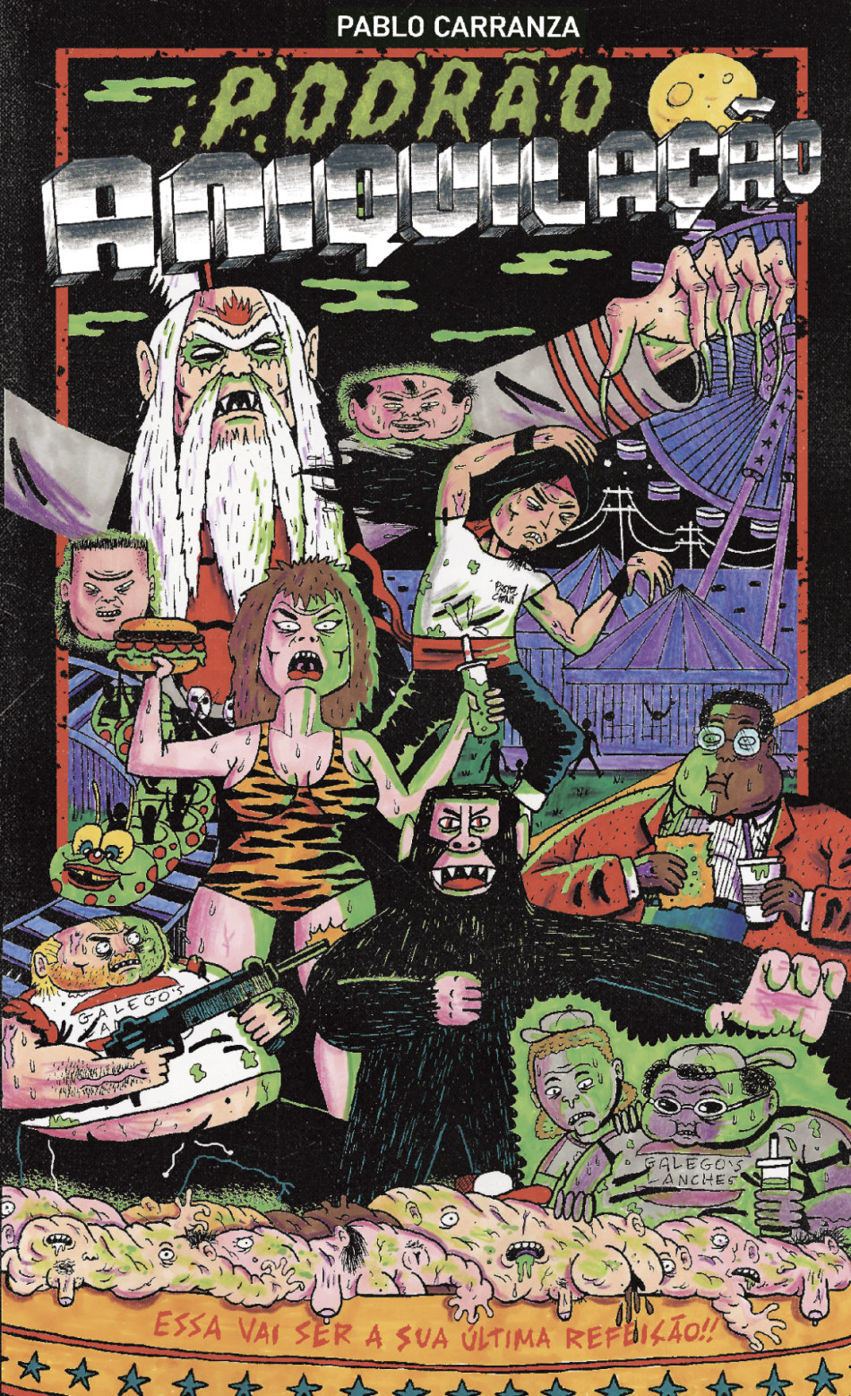 Pablo Carranza assina esta HQ que tem tudo a ver com a assinatura da Escória Comix (gibis que forçam limites estéticos e soam como um revide à hipocrisia e aparente “normalidade”). Podrão Aniquilação mostra um grupo de trabalhadores do legítimo lanche podrão tentando resistir à praga das comidas gourmet. | 288 páginas, R$ 39. Compre: Escória Comix.